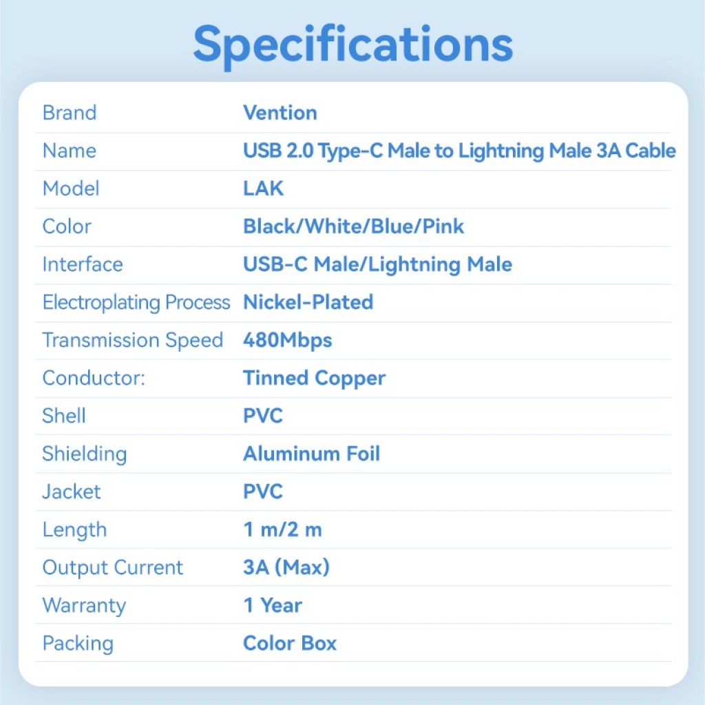 En stock En stock Cable de Datos ROCA PD USB C a Lightning 200cm 3A 27W Blanco Regístrate para ver $ precios Cód.ACC010640