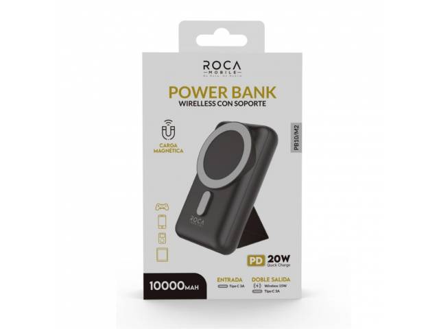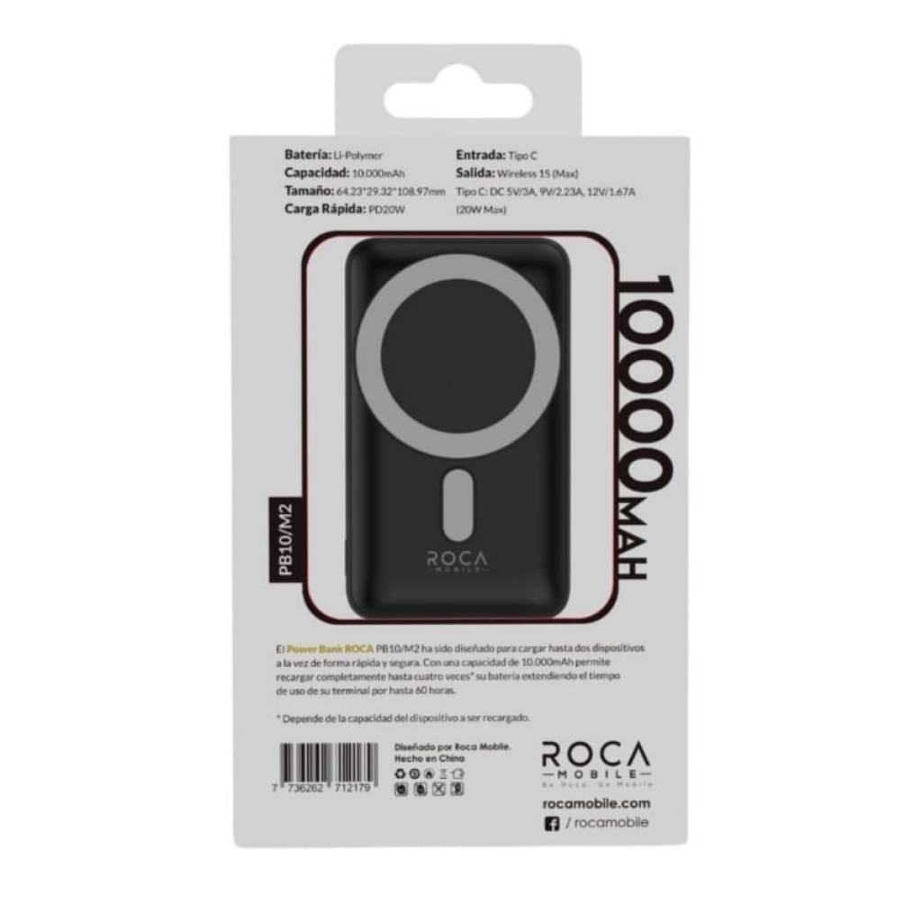 Power Bank ROCA PB10/M2 10.000mAh Carga Magnética Entrada: Tipo C / Salida: Tipo C 20W + Magnético 15W Negro