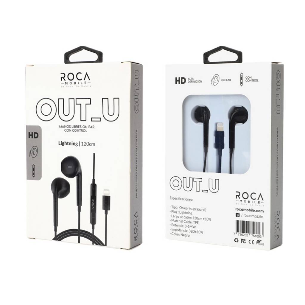 En stock En stock Manos Libres Stereo ROCA In_U Lightning Blanco (Intrauditivo) Universal Regístrate para ver $ precios Cód.ACC019851