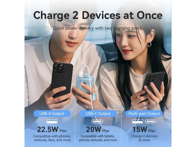Salida (USB-A): 5 V / 3 A; 9 V / 2 A; 12 V / 1,5 A; 10 V / 2,25 A (22,5 W máx.)
