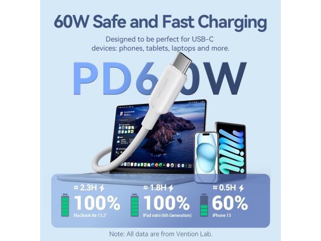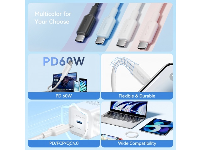En stock En stock Cable de Datos USB C a USB C Bicolor PD 60W 1.2M BlancoNegro SJ756 USAMS Regístrate para ver $ precios Cód.ACC019568