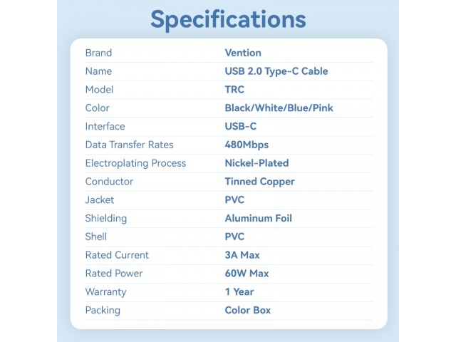 En stock En stock Cable USB-C a USB-C 3A 2M Negro TRCBH Vention Regístrate para ver $ precios Cód.ACC017286
