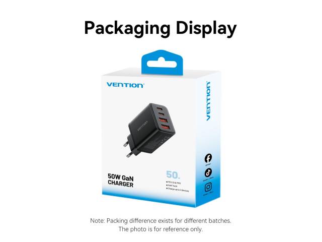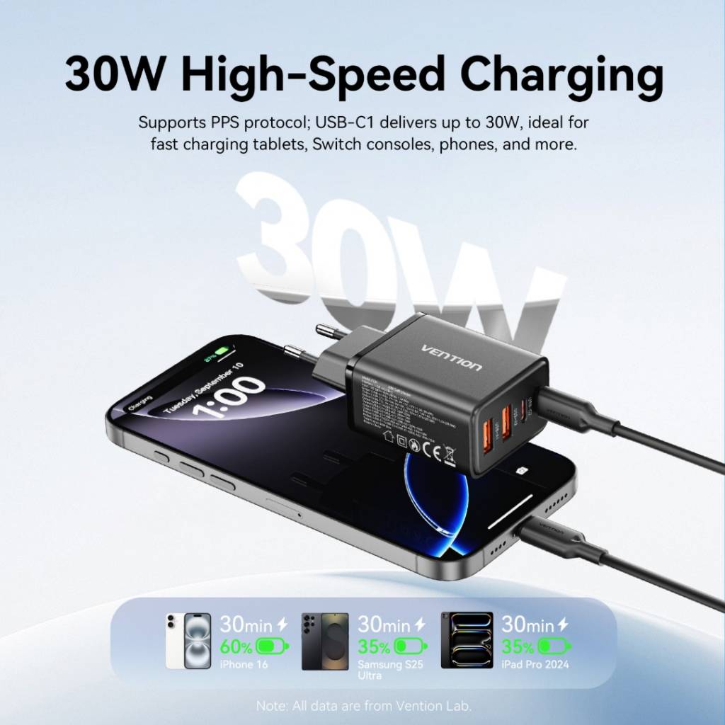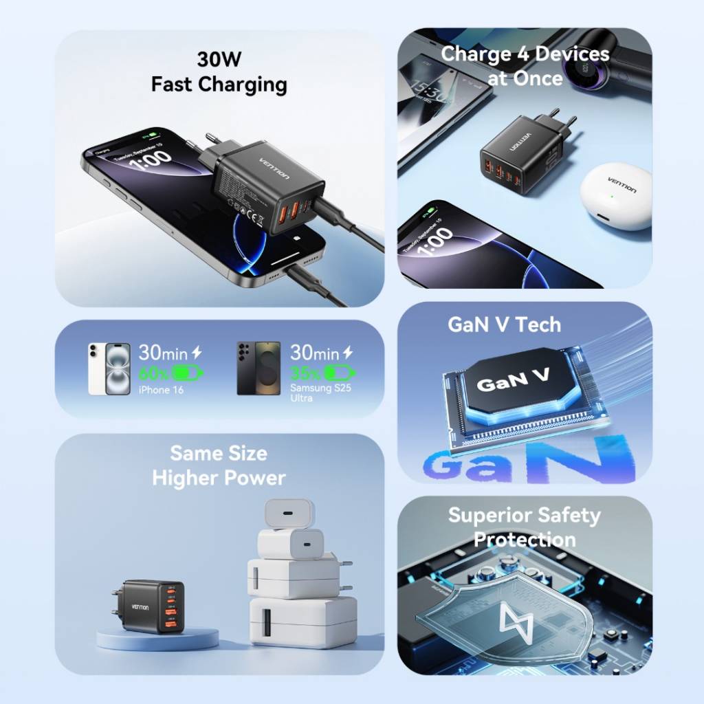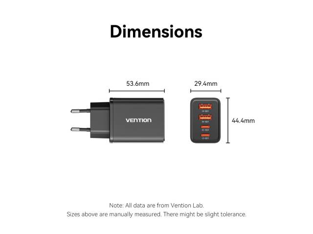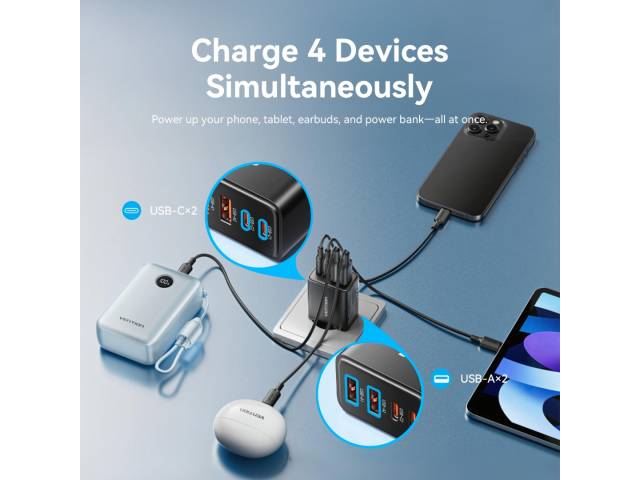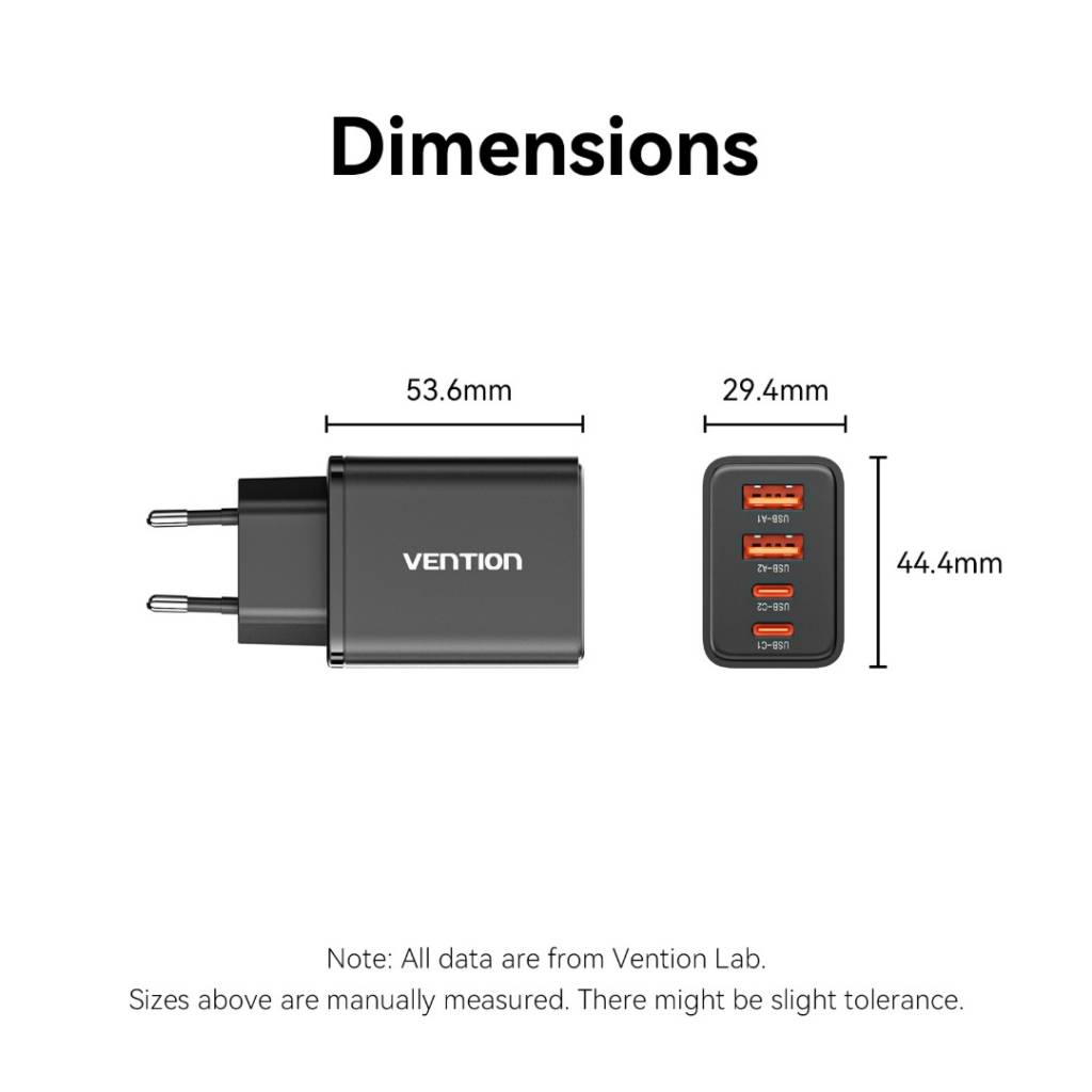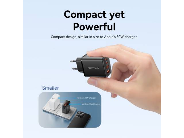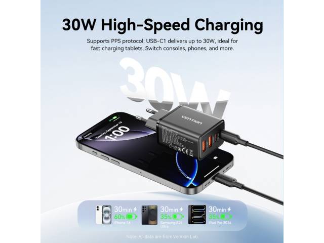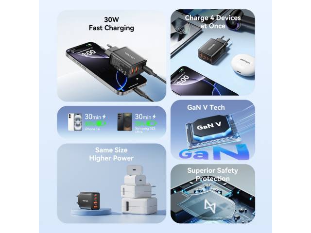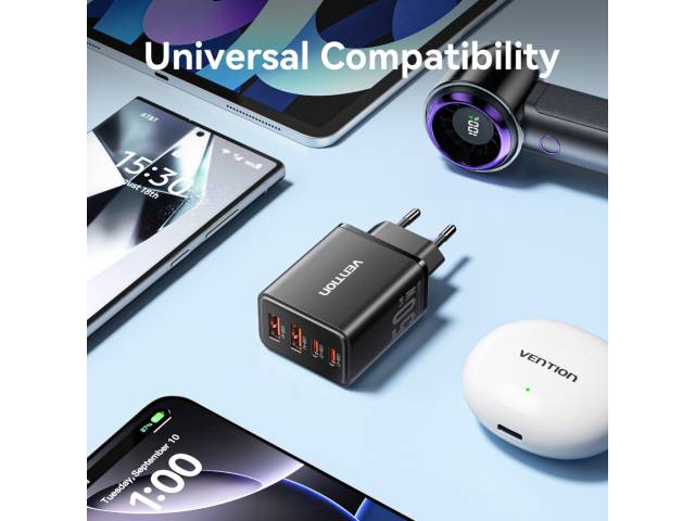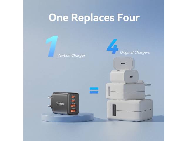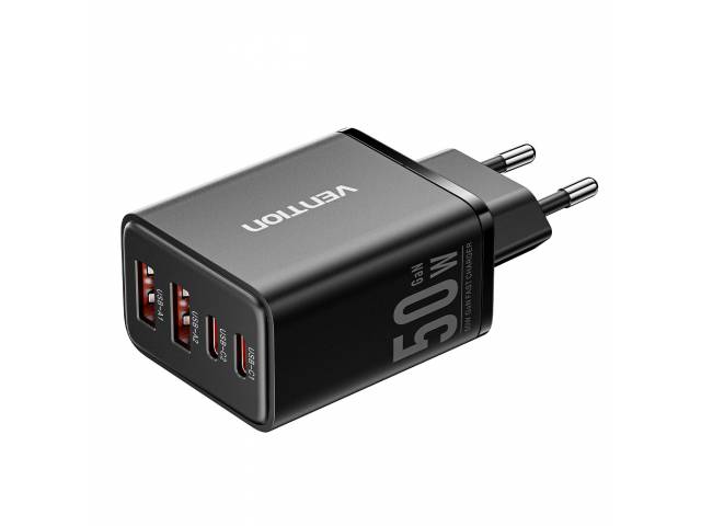 Cargador de Pared USB-C-C-A-A GaN 30W/20W/18W/18W / Negro FCHB0-EU Vention