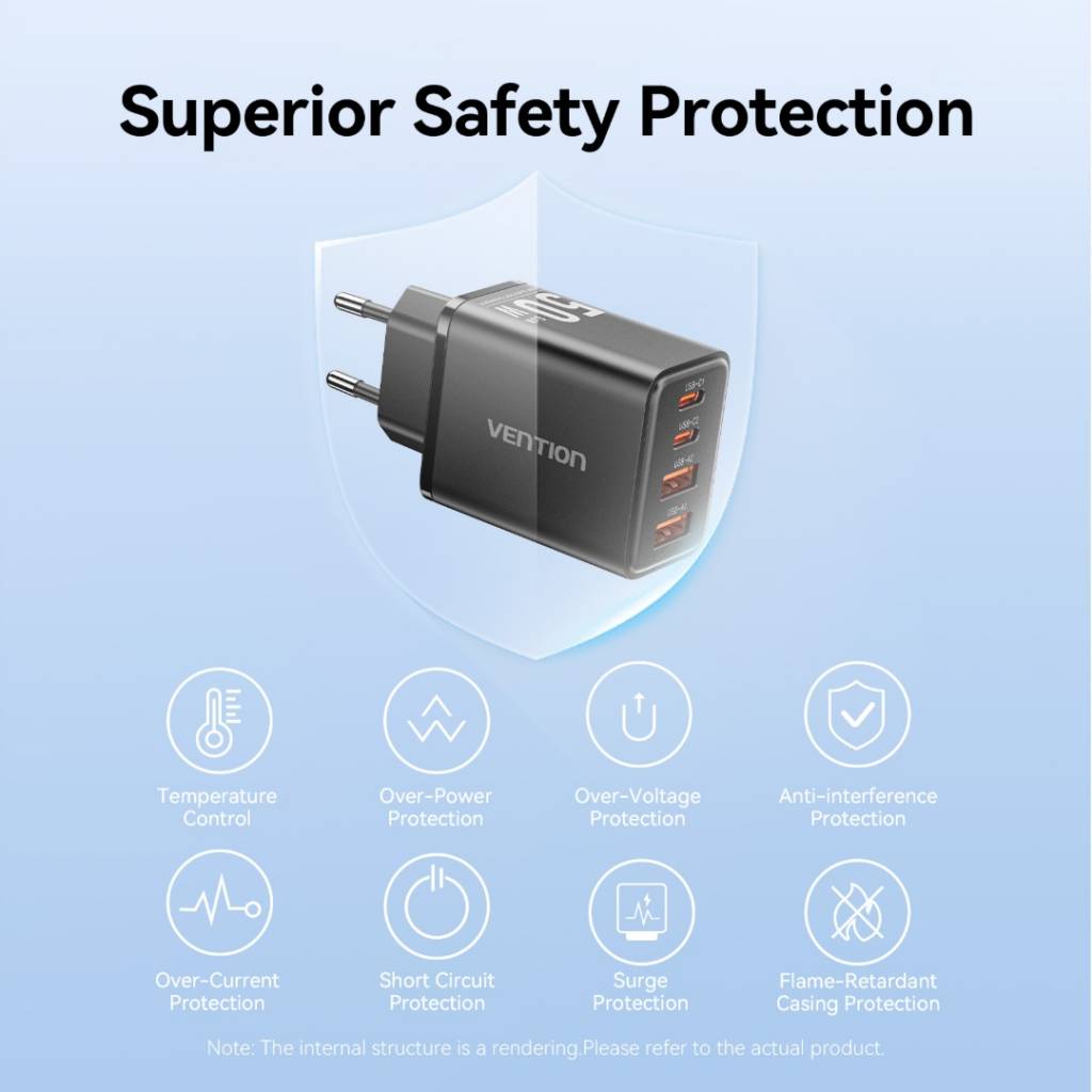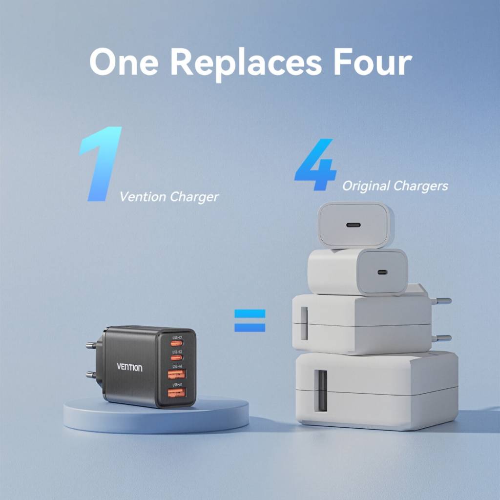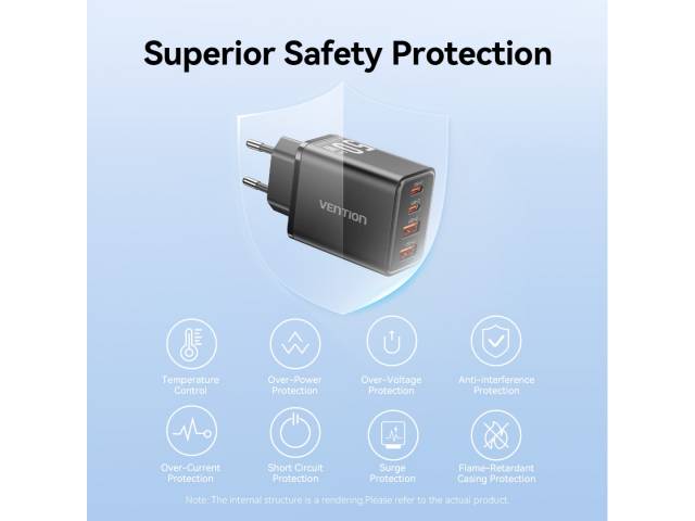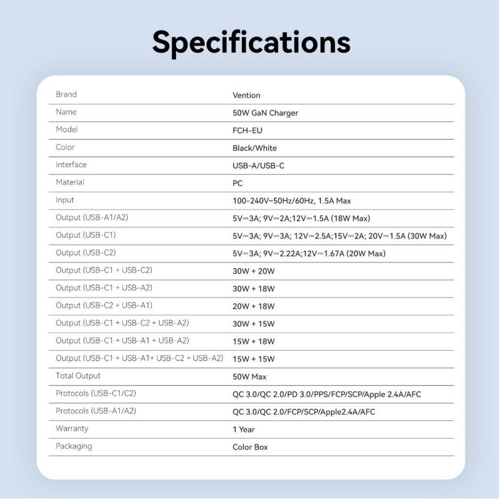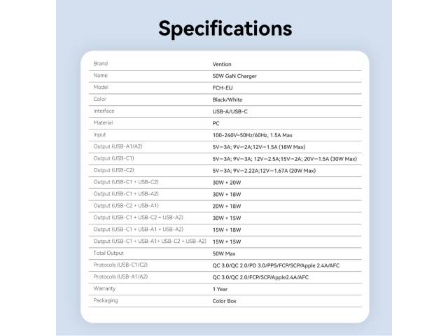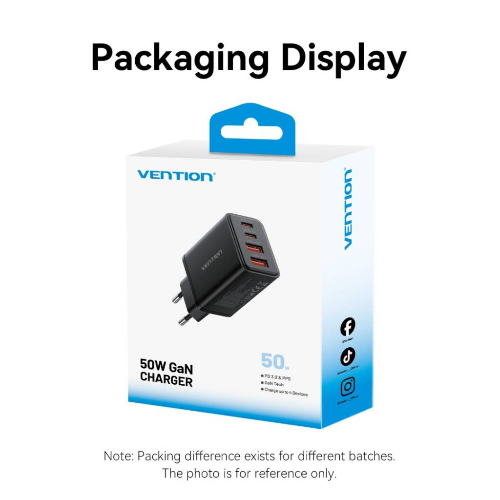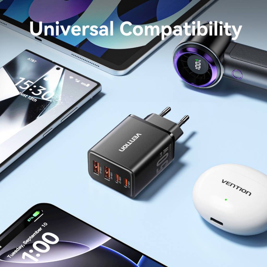 Cargador de Pared USB-C-C-A-A GaN 30W/20W/18W/18W / Negro FCHB0-EU Vention