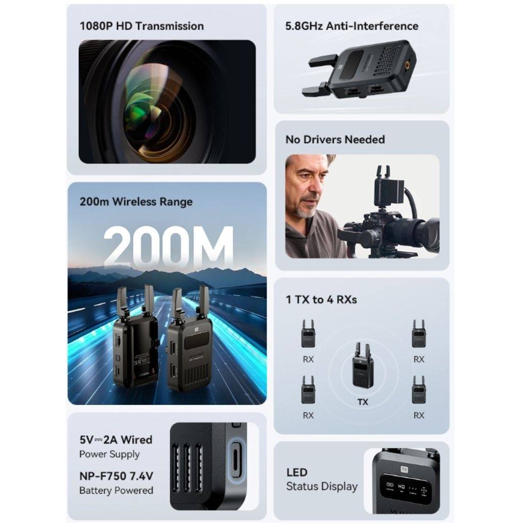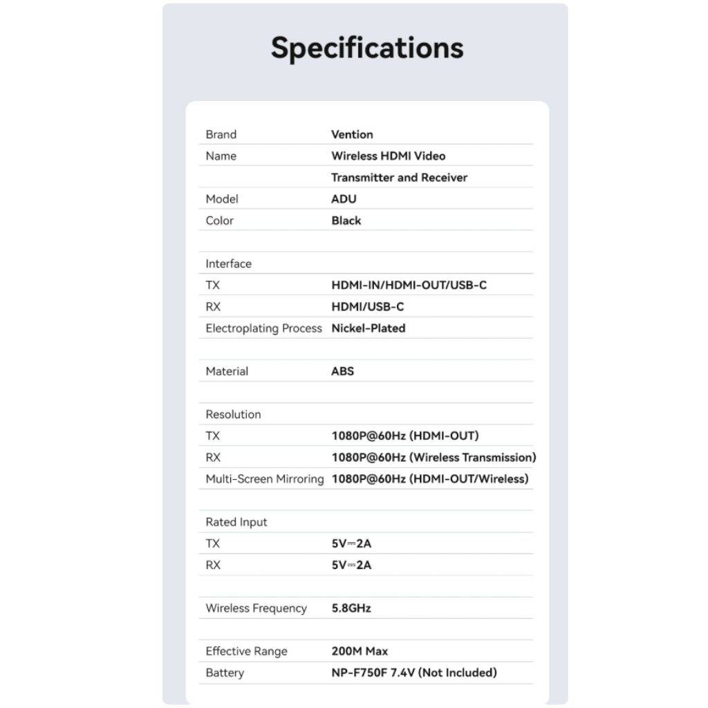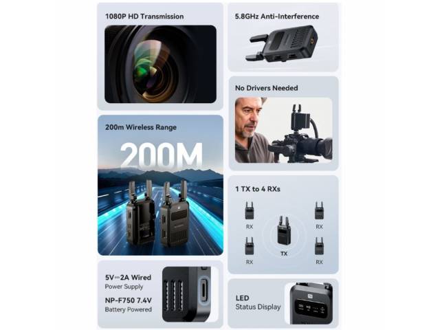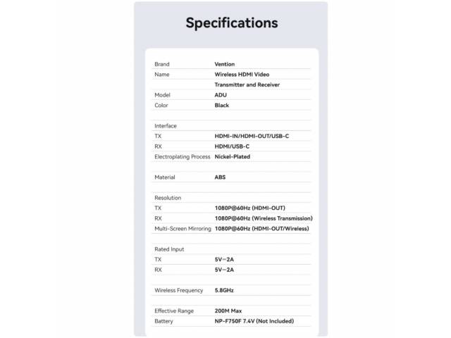 RX: 1080P@60Hz (Transmisión inalámbrica)