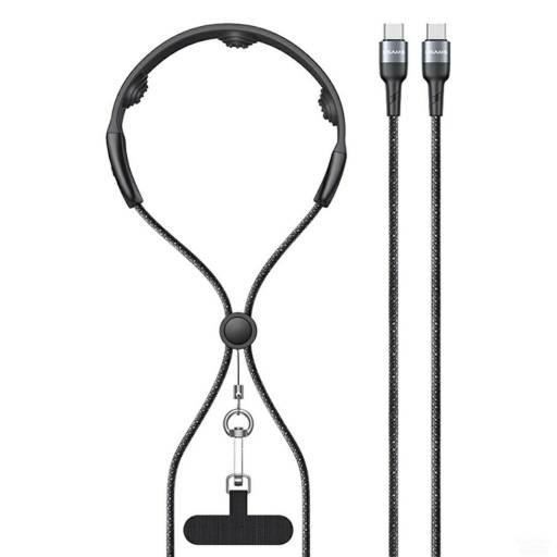 Correa para Cuello + Cable de Datos USB C a USB C 100W Negro SJ759 USAMS