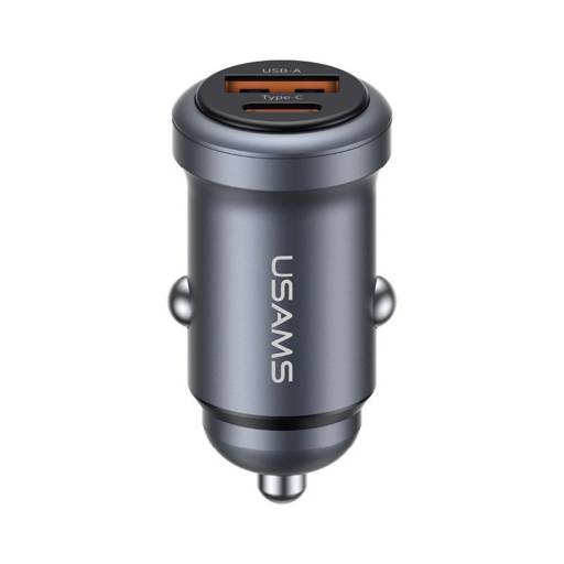 Cargador Auto USB A/USB C 30W Aluminio Gris CC322 USAMS