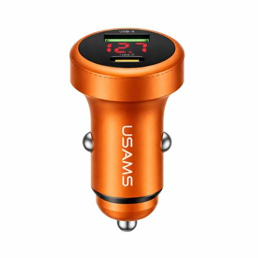 Cargador Auto USB A/USB C 45W Aluminio Anaranjado CC327 USAMS