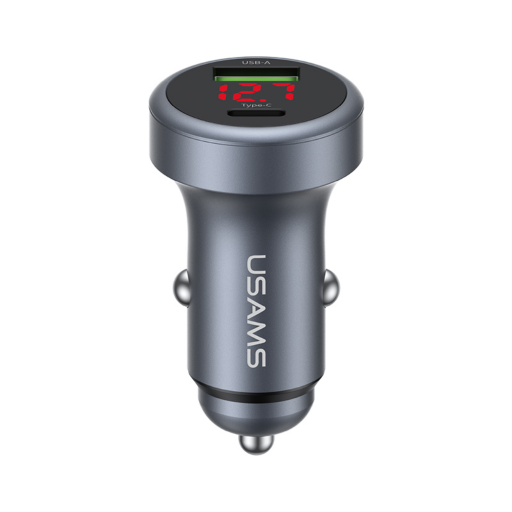 Cargador Auto 45W USB A / USB C Gris Aluminio CC327 USAMS