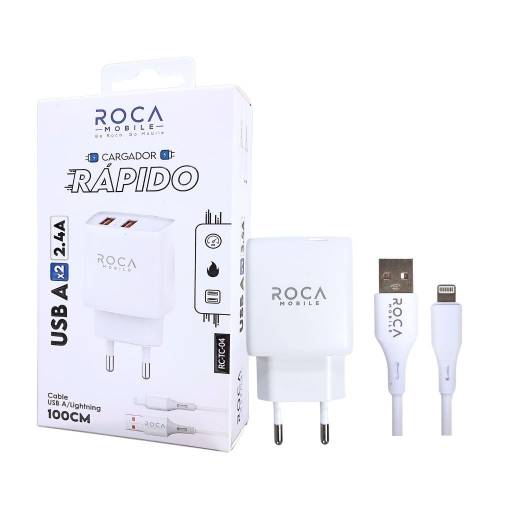 Cargador ROCA 2.4A 2 x USB A Cable USB A a Lightning / 100cm Blanco (RC-TC-04)