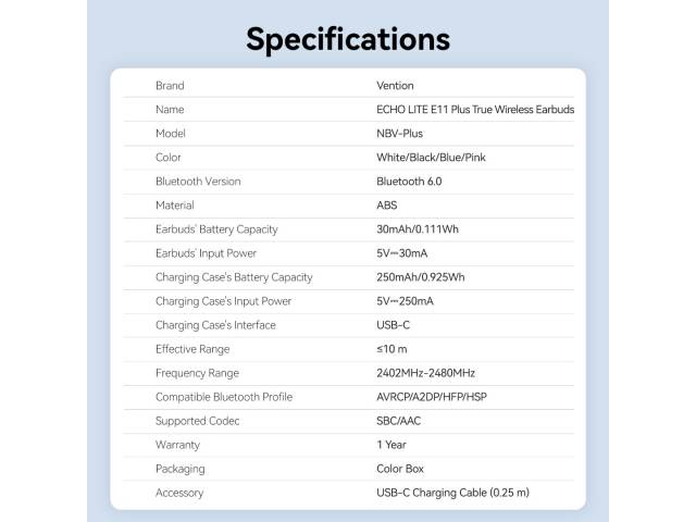 En stock En stock Auricular Bluetooth ECHO LITE E11 Pro Negro NBVB0-Pro Vention Regístrate para ver $ precios Cód.ACC020428