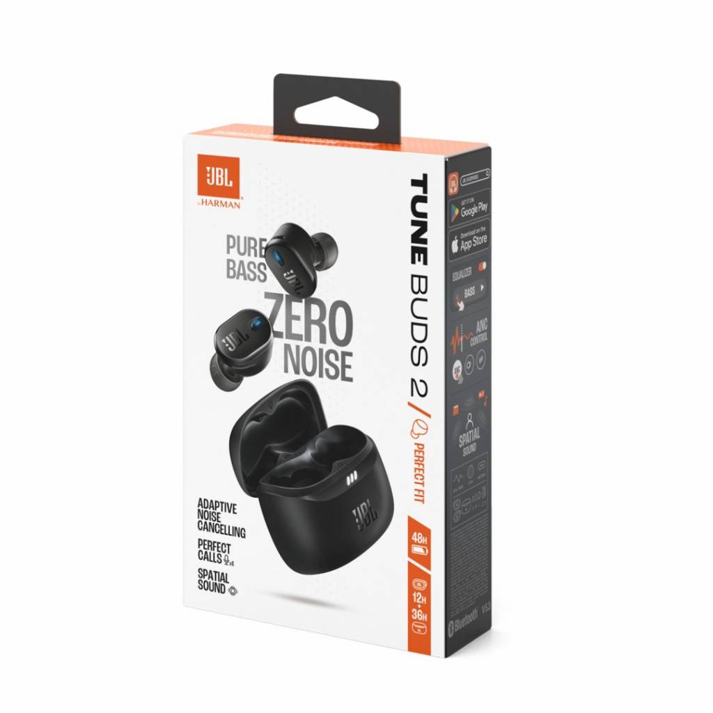 Los JBL Tune Buds 2 ofrecen sonido JBL Pure Bass y JBL Spatial Sound para una experiencia más envolvente e inmersiva.
