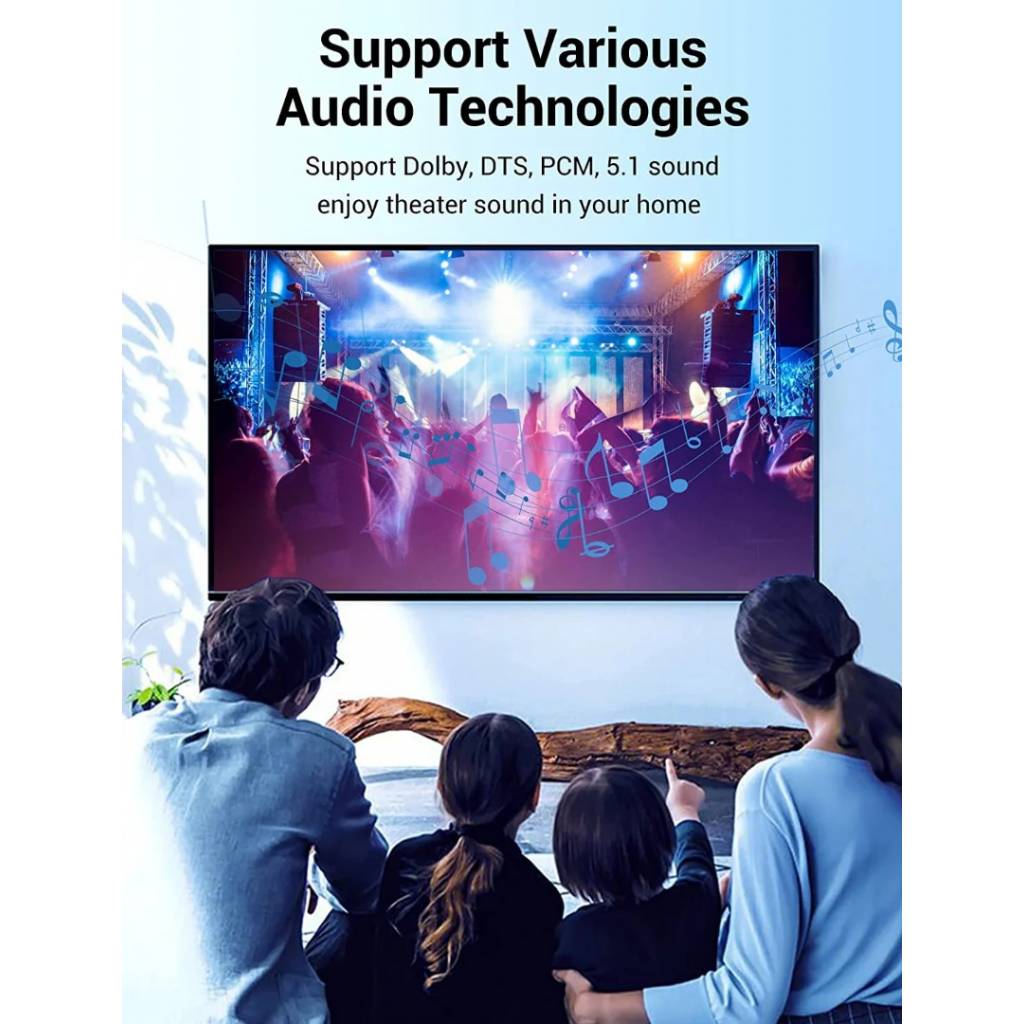 Compatibilidad universal: Equipado con conectores Toslink (S/PDIF, óptico) chapados en oro, se conecta sin problemas a una amplia gama de dispositivos, incluidas barras de sonido, televisores, consolas de juegos (Xbox, PlayStation), reproductores de Blu-ray y más.