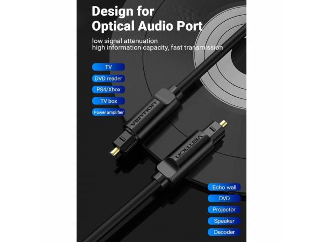 Conectores: Equipado con conectores Toslink macho en ambos extremos, chapados en oro de 24 quilates, lo que asegura una conexión robusta y una transmisión de señal óptima.