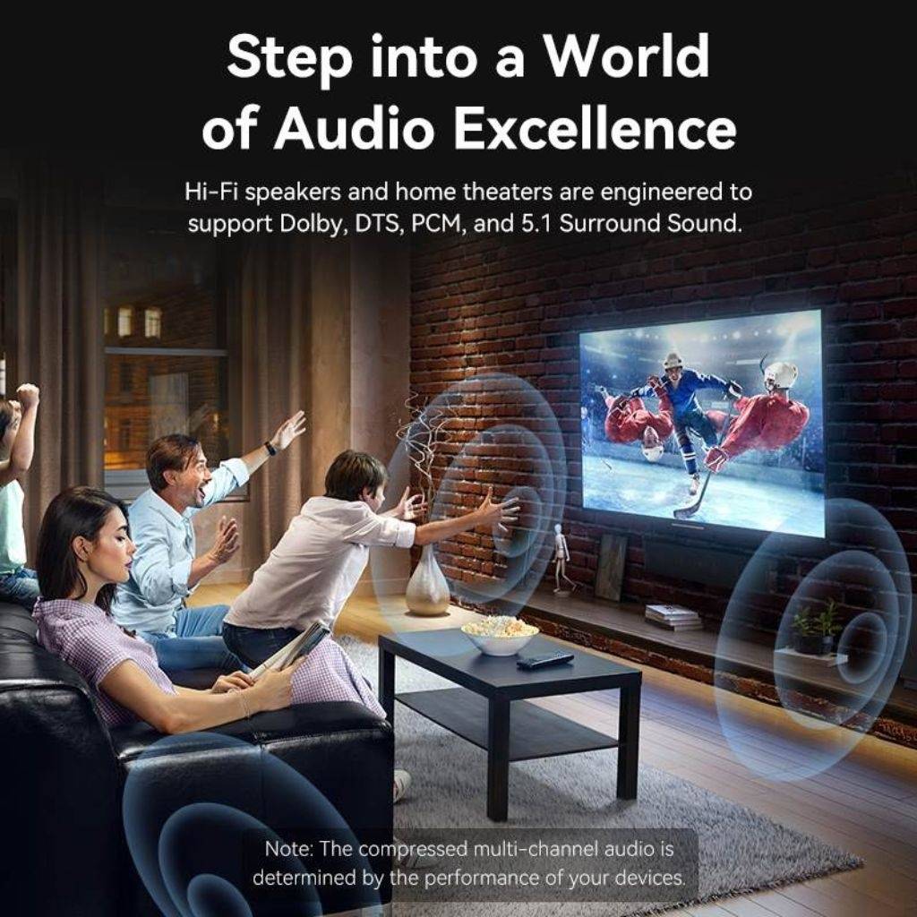 Es compatible con todos los dispositivos equipados con puertos Toslink estándar, lo que lo convierte en una opción versátil para cualquier configuración de audio.