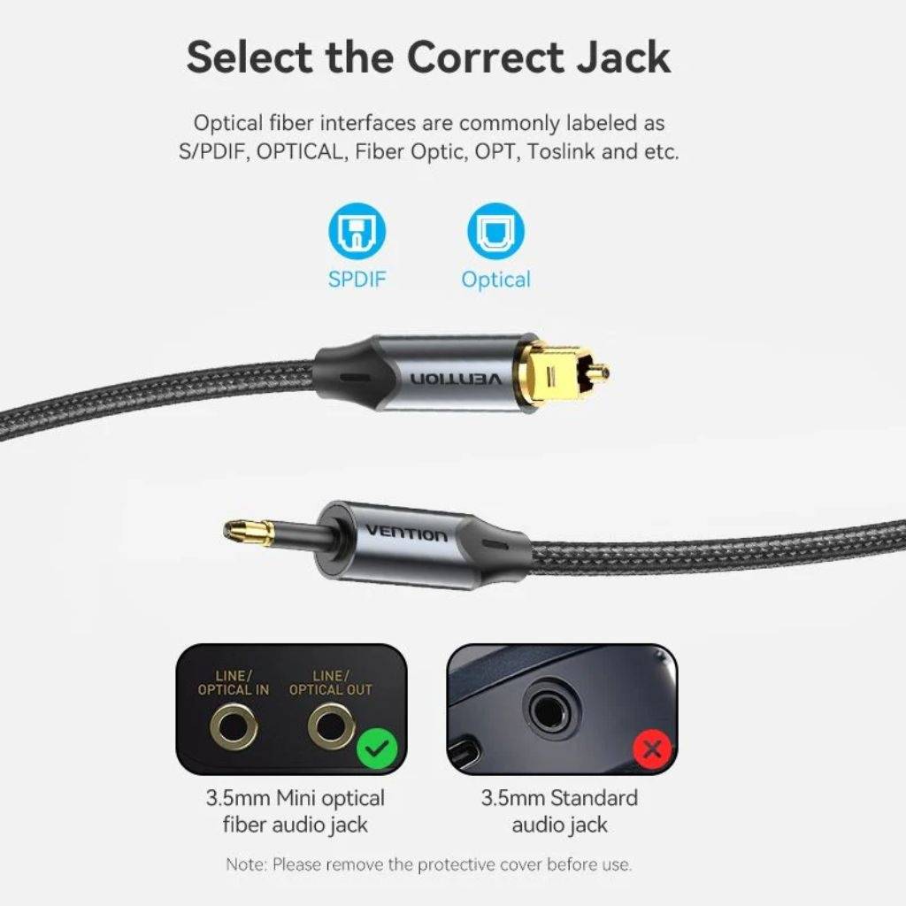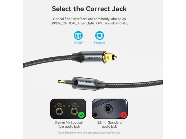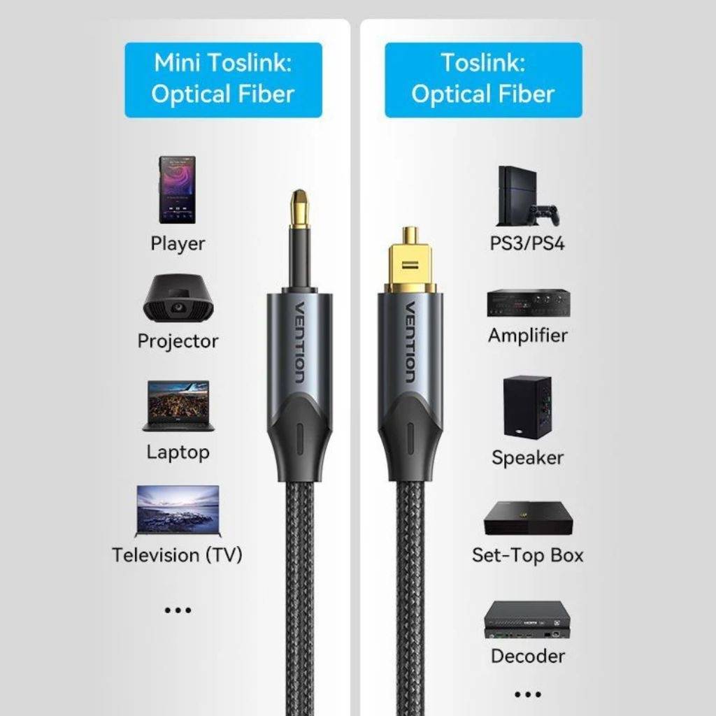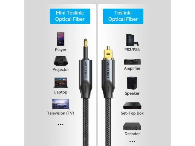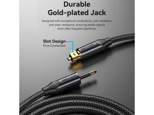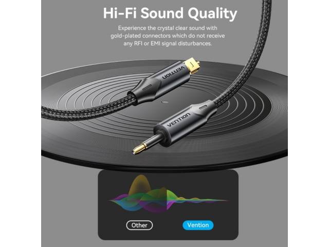 Transmisión de audio de alta fidelidad: A diferencia de los cables de audio estándar, el cable de audio Toslink Hi-Fi de Vention utiliza tecnología de fibra óptica para transmitir señales de audio como pulsos de luz.