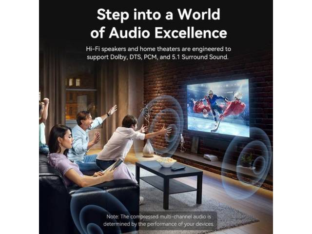Calidad de sonido incomparable: Disfrute de un audio sin distorsiones con soporte para Dolby, DTS, PCM y sonido envolvente 5.1, brindando una experiencia de audio envolvente.