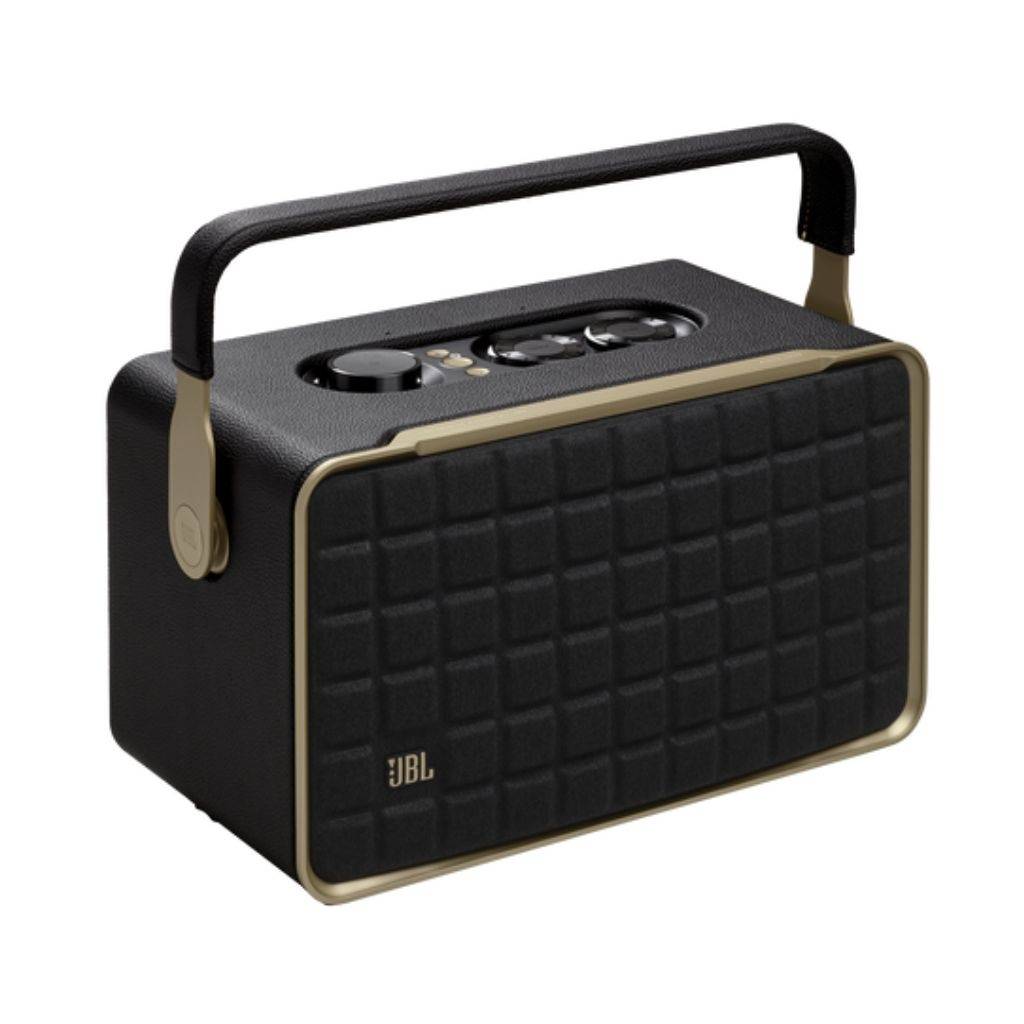 Altavoz portátil con sonido estéreo JBL potente y equilibrado, graves profundos y agudos nítidos para música, películas y más. Ofrece conectividad Wi-Fi, Bluetooth, AirPlay, Chromecast y Spotify Connect para reproducir desde tus apps favoritas sin cables. Incluye Google Assistant y Amazon Alexa integrados para control por voz y manos libres.* Con batería recargable de hasta 8 h, diseño retro elegante con asa premium para llevarlo donde quieras, y compatibilidad con reproducción en varias salas. Fabricado con materiales reciclados y controles intuitivos desde el altavoz o la app JBL One.