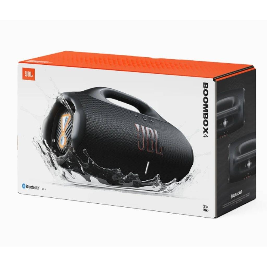 Parlante JBL Boombox 4 con conectividad Bluetooth para reproducción inalámbrica desde tu celular o dispositivo compatible.