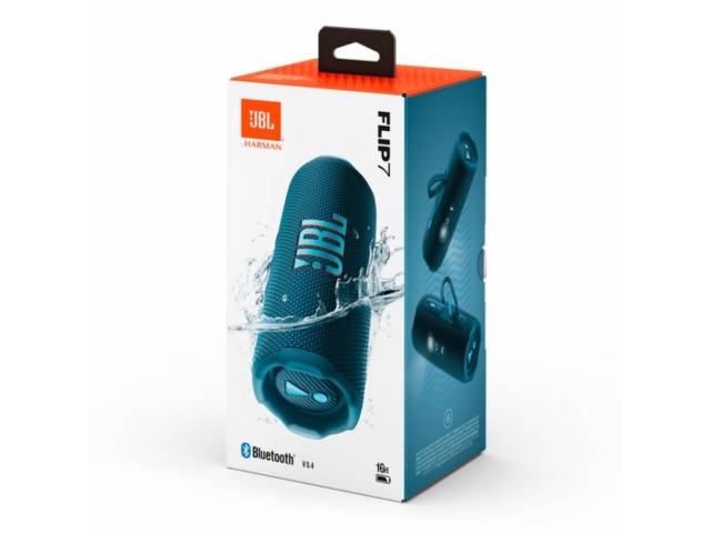 Parlante JBL Flip 7 con conectividad Bluetooth 5.4 para reproducción inalámbrica.