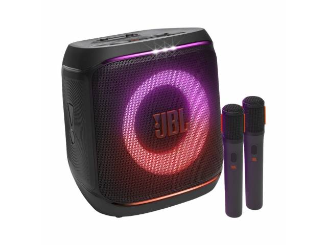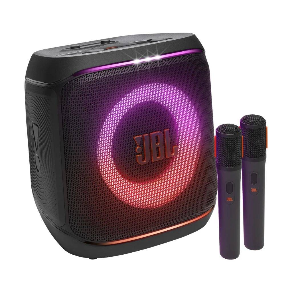 Parlante portátil JBL PartyBox Encore 2 + 2 Mic Party diseñado para animar cualquier evento o fiesta con sonido potente de 100 W RMS y graves profundos.