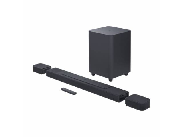 Barra de sonido JBL BAR 1000 con sistema de sonido envolvente 7.1.4 y altavoces surround inalámbricos desmontables que crean una experiencia de audio cinematográfica en tu sala.