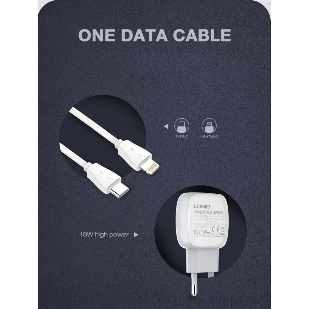 En stock En stock Cargador Pared A2317C USB C a Lightning 30W PDQC3.0 Carga Rápida Blanco LDNIO Regístrate para ver $ precios Cód.ACC018934