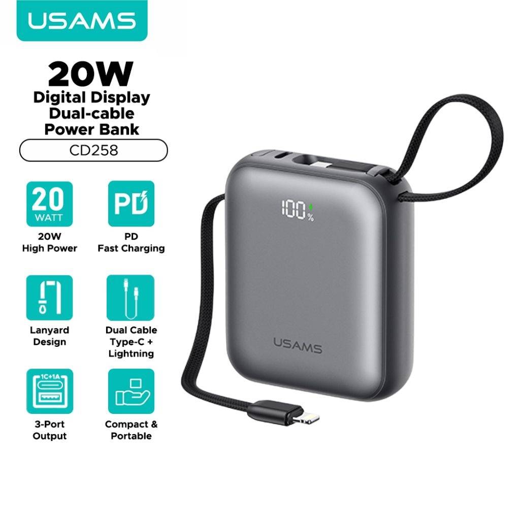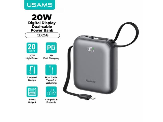 En stock En stock Power Bank Mini 20W Cable Tipo C + Lightning 10.000mAh Gris CD240 USAMS Regístrate para ver $ precios Cód.ACC017604