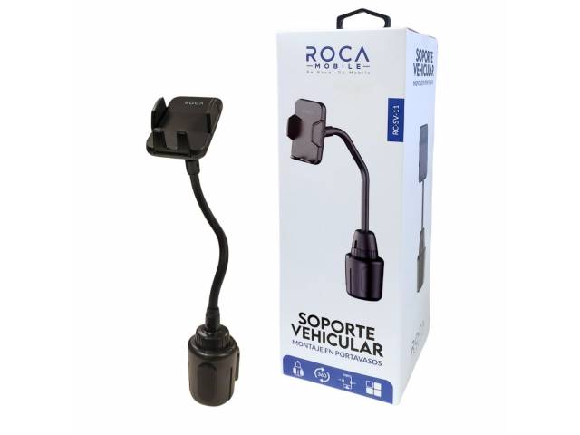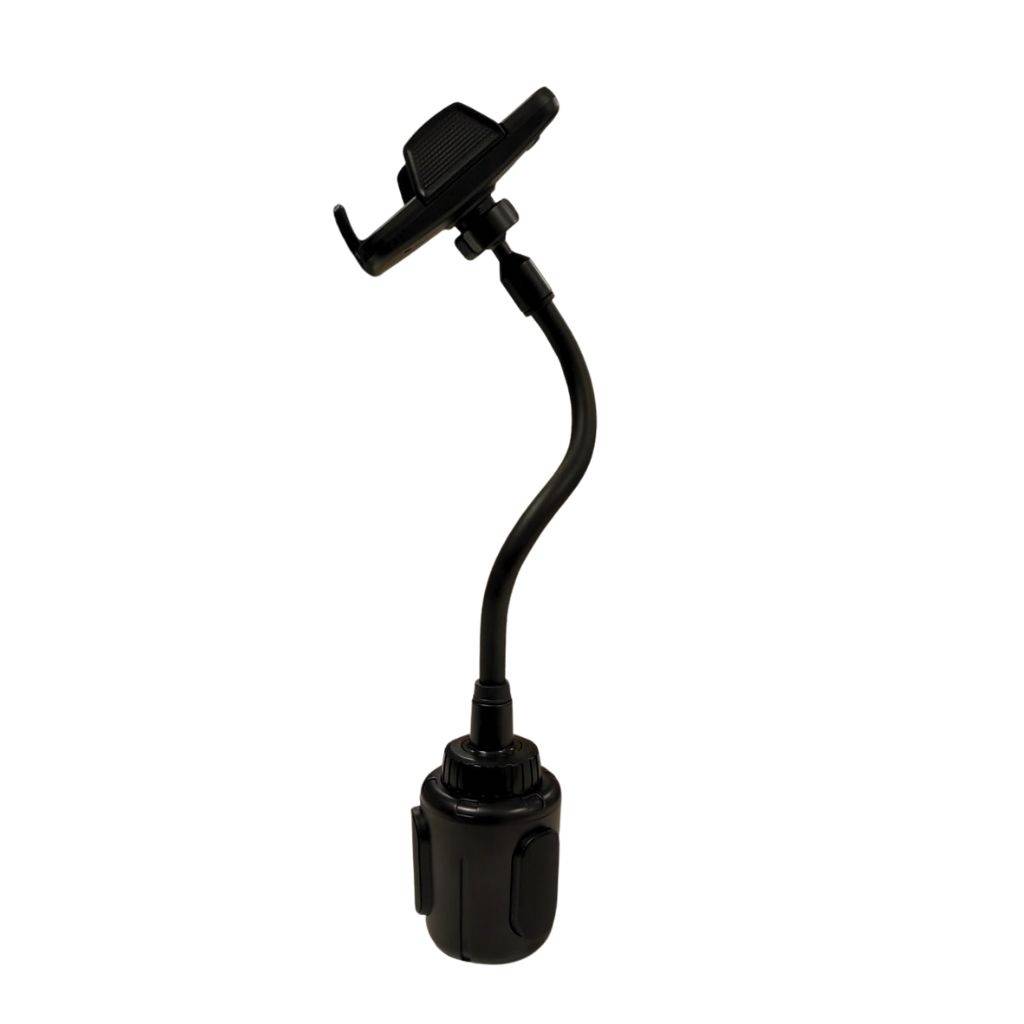 Soporte para smartphone que se monta en el portavasos del auto.