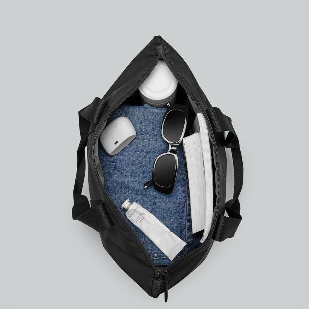 Materiales: Está fabricado con poliéster reciclado y a menudo cuenta con un revestimiento de TPU impermeable, lo que ayuda a proteger tus pertenencias de la lluvia y la nieve.