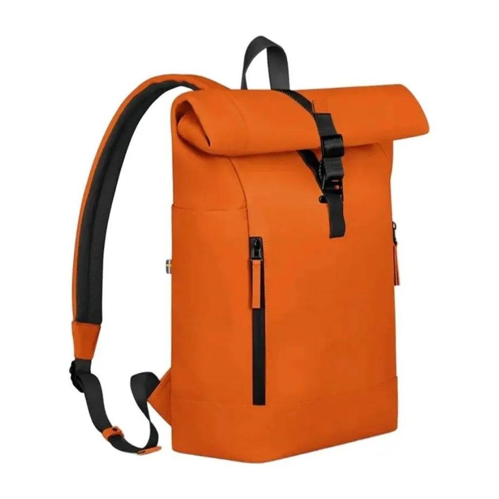 La mochila Rullen 2.0 en color anaranjado combina diseño urbano y funcionalidad para tu día a día o tus viajes por la ciudad. Su material impermeable protege tus pertenencias de la lluvia, mientras que el compartimento acolchado admite laptops de hasta 13″ y el diseño roll-top permite ajustar el espacio interior según lo que necesites.