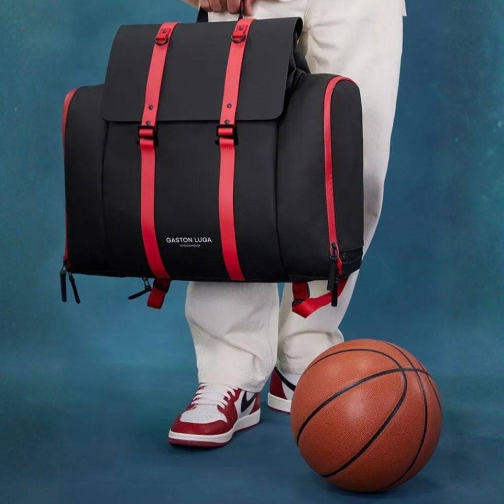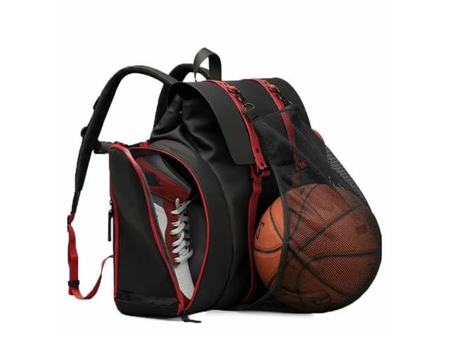 Un soporte de malla retráctil, ubicado en un compartimento oculto en la parte inferior, te permite sujetar tu pelota de baloncesto fuera de la mochila.