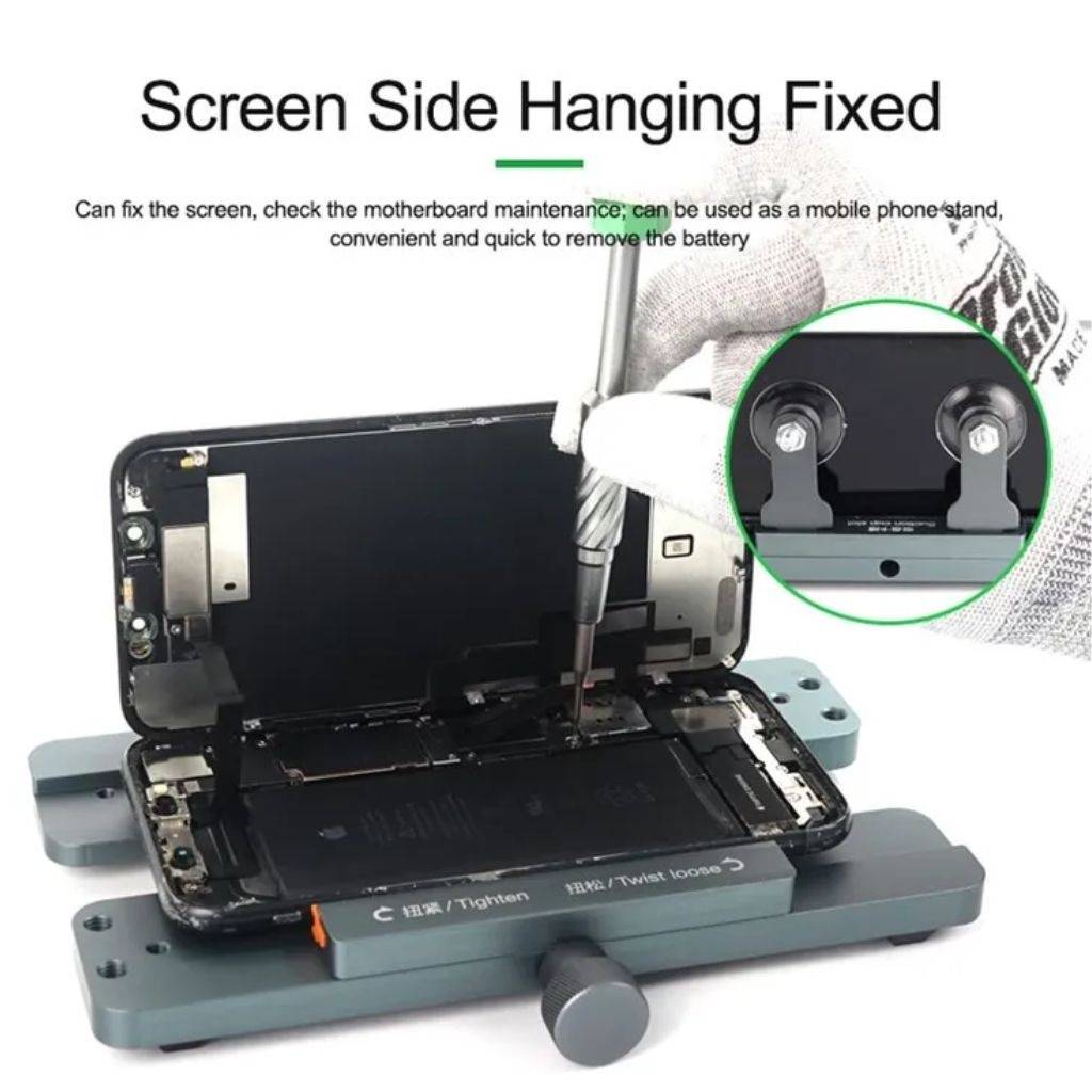 Soporte de presión estable, diseño de amortiguación de las almohadillas de esponja superior e inferior, seguro y a prueba de explosiones, conveniente y rápido, adecuado para todos los aspectos de mantenimiento de presión en la mayoría de las pantallas de teléfonos móviles, el ancho se puede ajustar a voluntad.