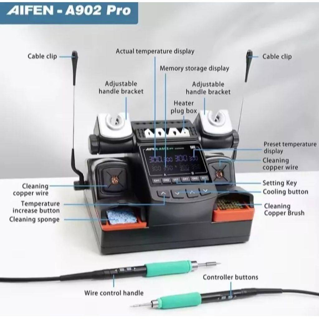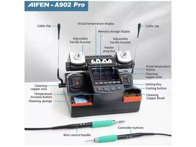 Es una estación de soldadura profesional de doble canal y alta potencia, diseñada para técnicos que requieren eficiencia y precisión en trabajos de microsoldadura.