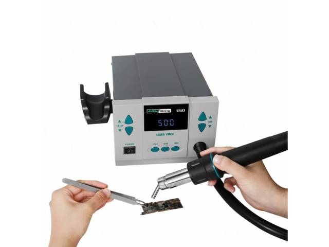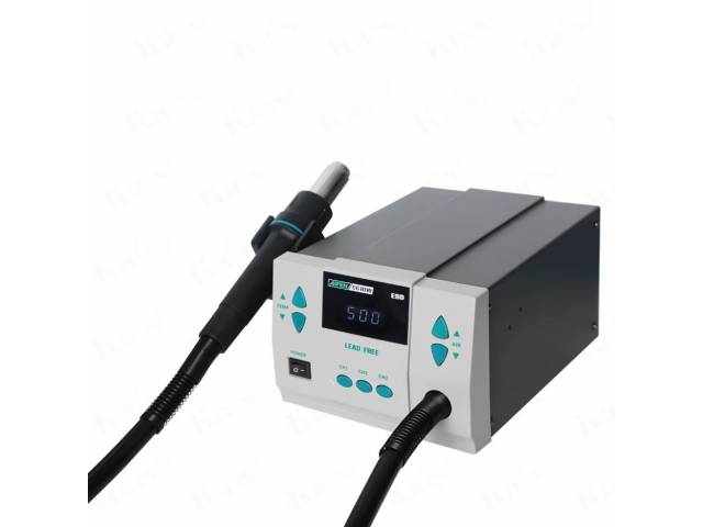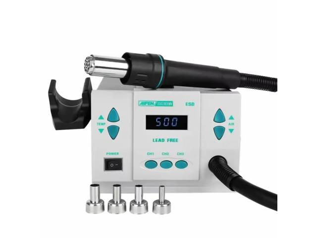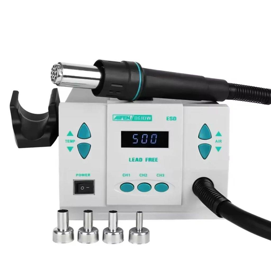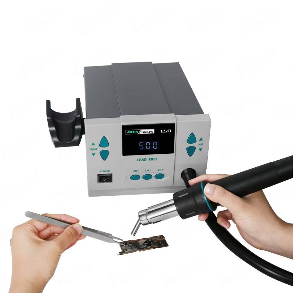 Es una estación de retrabajo de aire caliente ampliamente utilizada por técnicos para la reparación de teléfonos móviles y soldadura/desoldadura de componentes SMD/BGA.