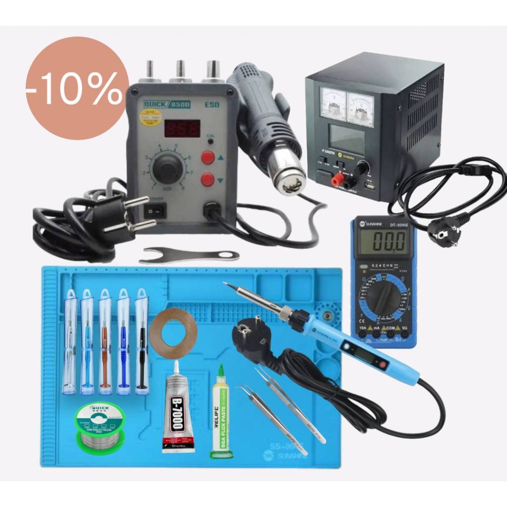 1- HER014418 Estación de Soldar NT701A+ | Pistola de Aire Caliente + Cautín | Sugon