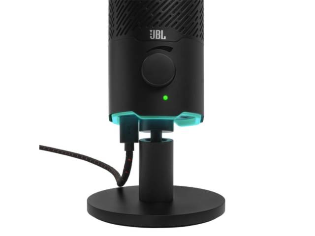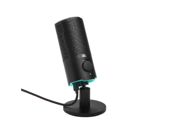 Micrófono JBL Quantum Stream USB de condensador doble ideal para streaming, gaming y grabación con voz clara y potente.