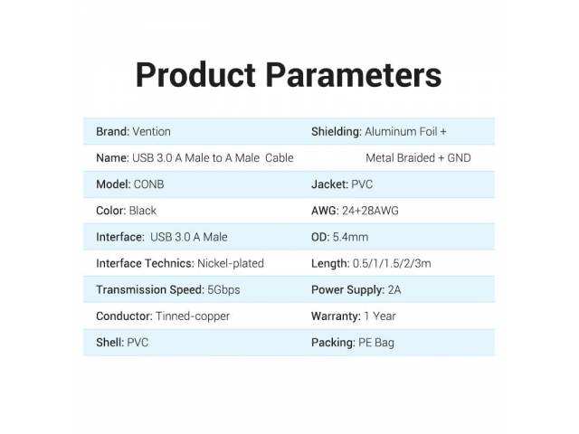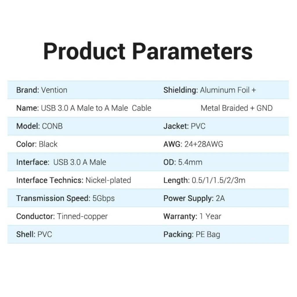 En stock En stock Cable USB-A 3.0 MachoMacho 0.5M Negro CONBD Vention Regístrate para ver $ precios Cód.ACC019917