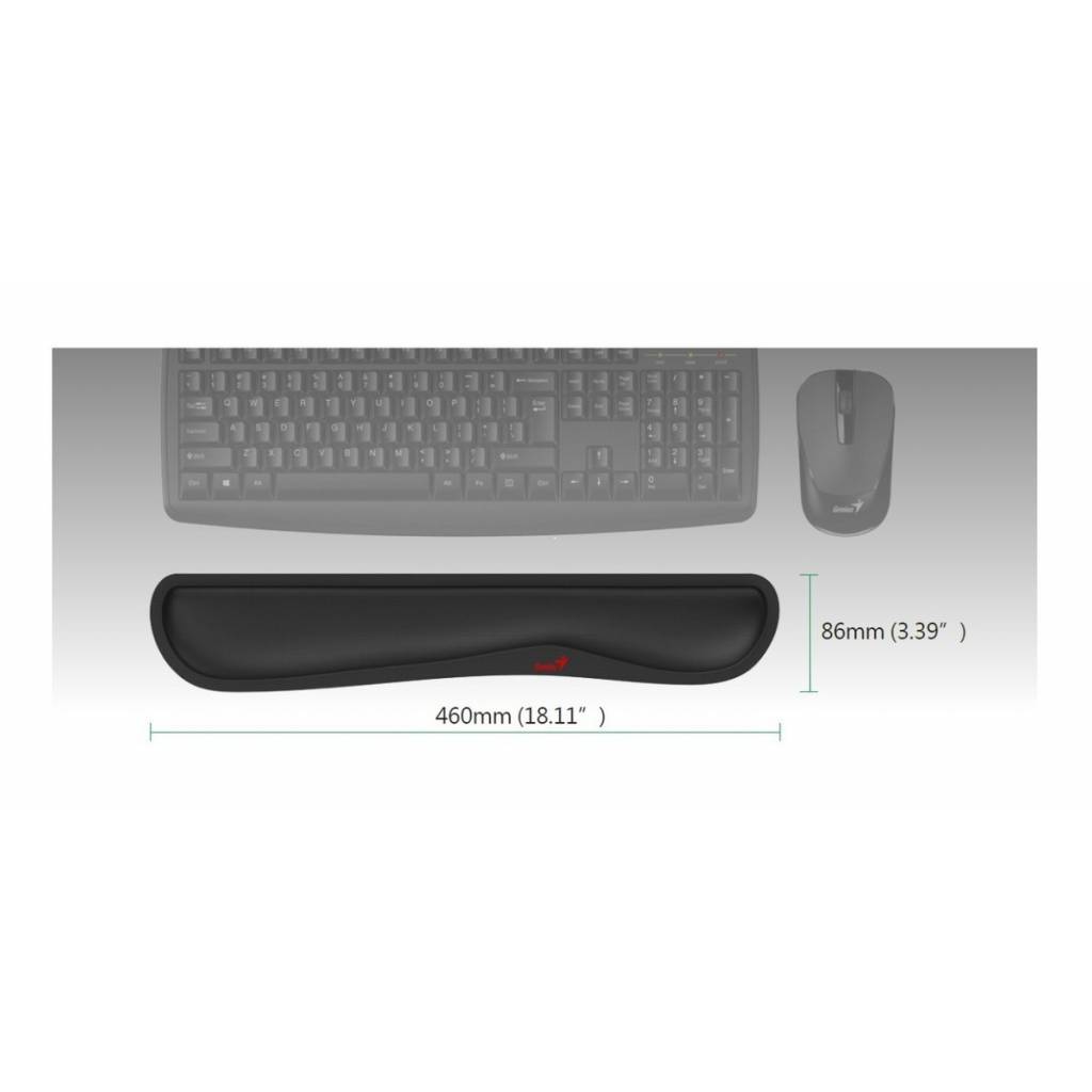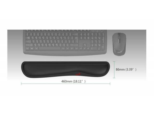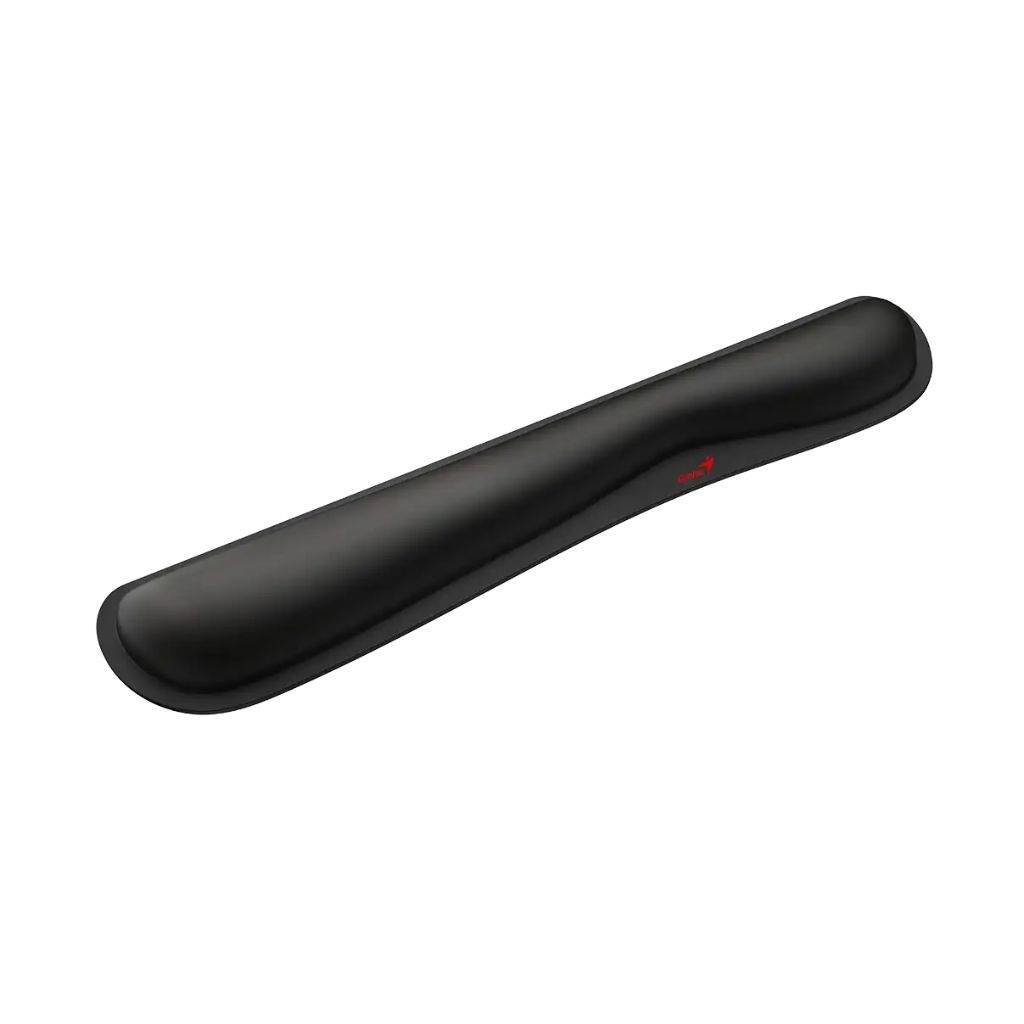 Pad soporte de muñecas para teclado hecho de espuma comfortable, base de goma antideslizante, y diseño ergonómico.