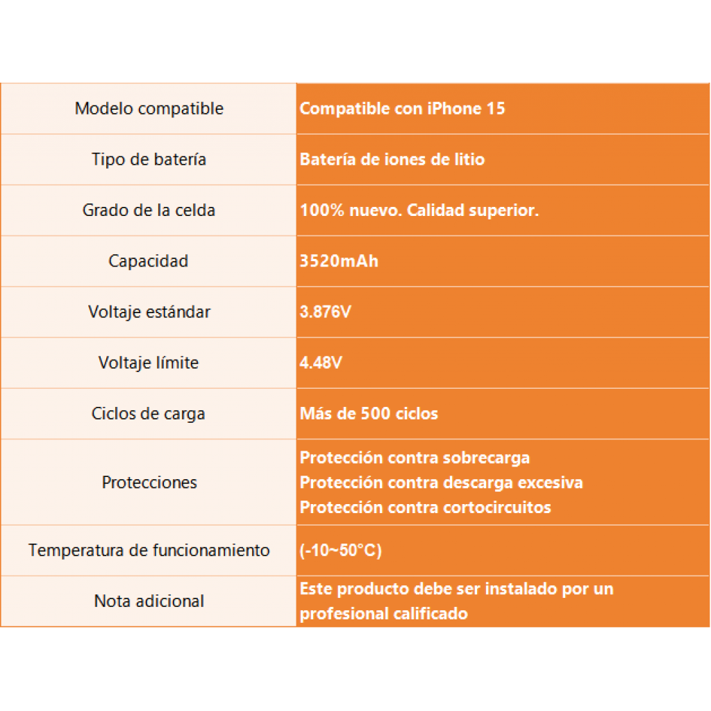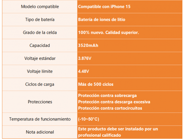 En stock En stock Batería para Apple iPhone 15 Plus 4780mAh Autoprogramable Alta Capacidad ORYRO Regístrate para ver $ precios Cód.REP019379