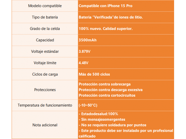 En stock En stock Batería para Apple iPhone 15 Pro 3420mAh ORYRO Regístrate para ver $ precios Cód.REP019381