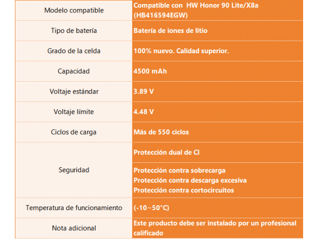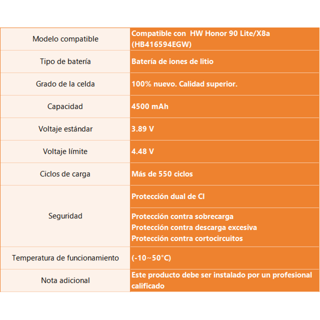En stock En stock Batería para Huawei Nova 9 HB476489EFW ORYRO Regístrate para ver $ precios Cód.REP019776
