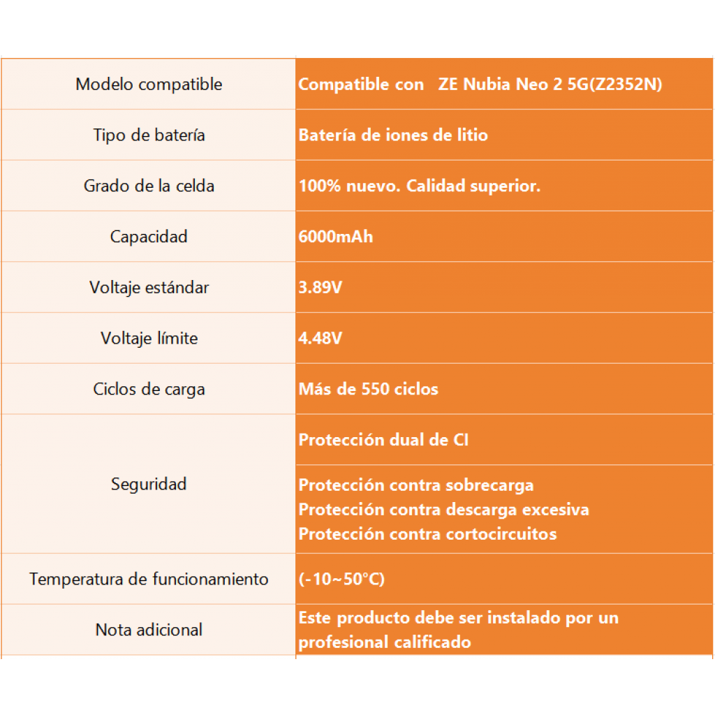 Batería para ZTE Nubia Neo 2 5G Z2352N ORYRO